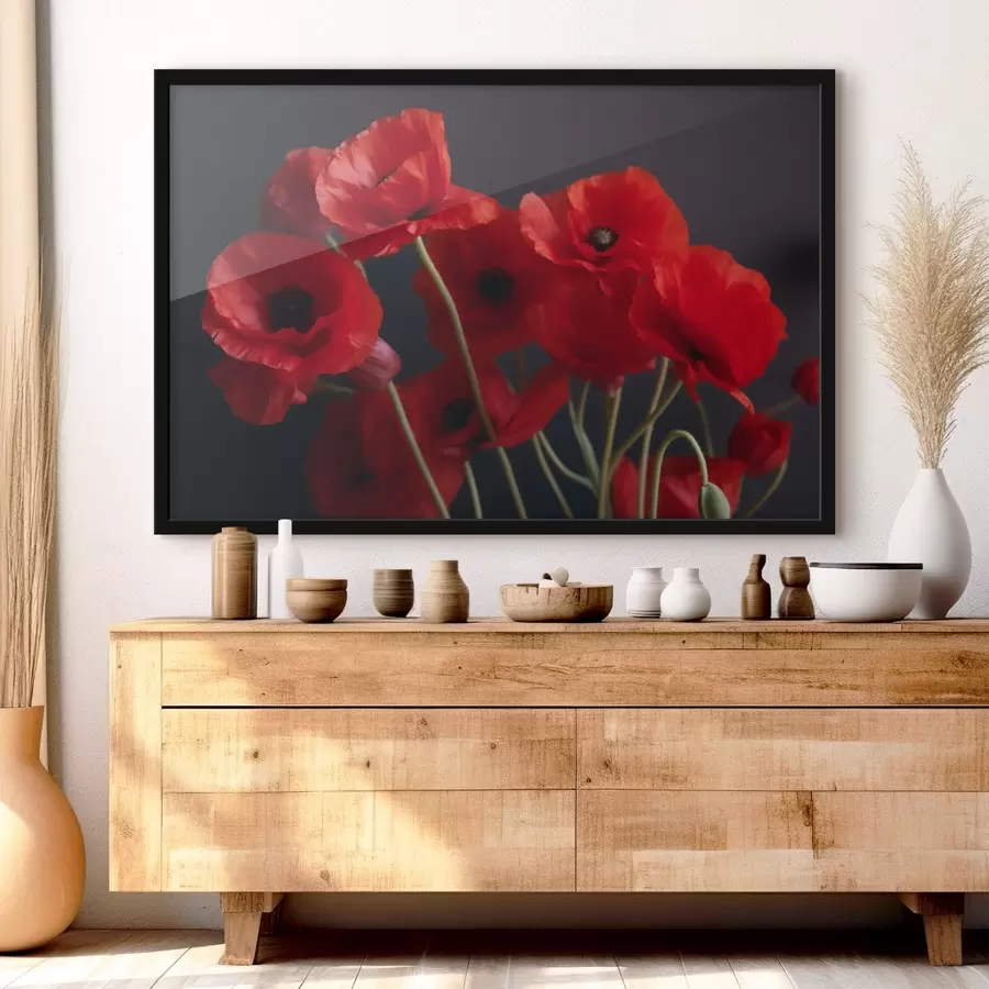 Gėlių puokštė raudonoje tūrinėje vazoje