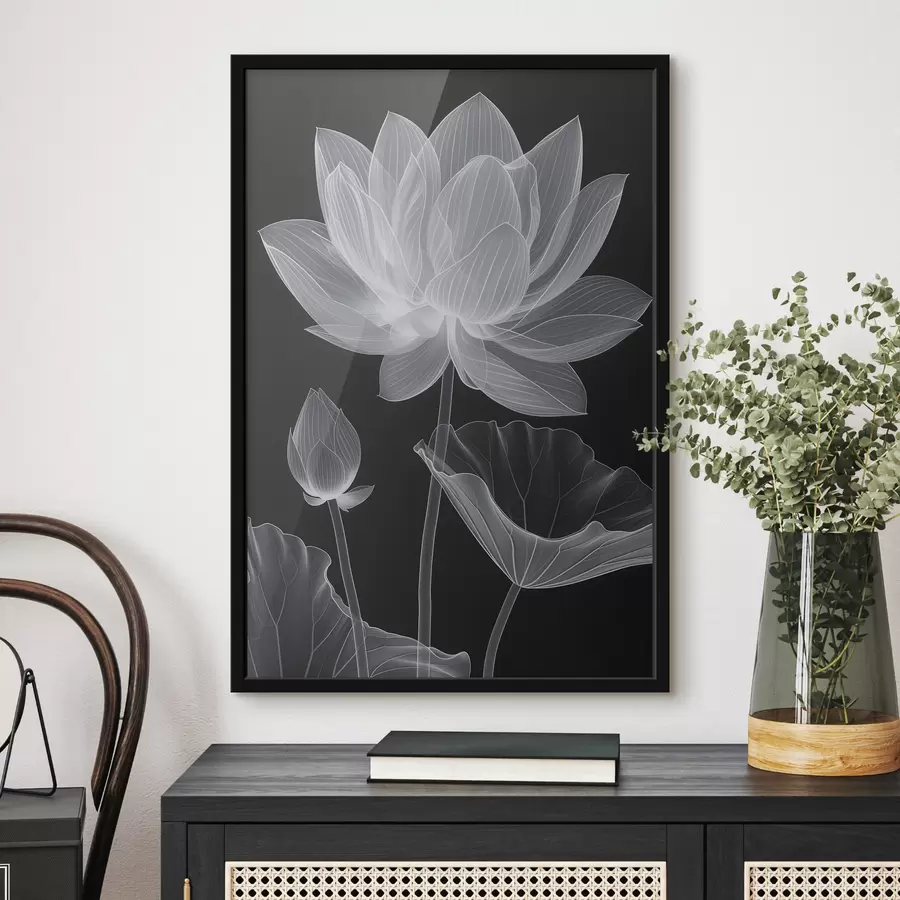Subtilus permatomas lotosas tamsiame fone