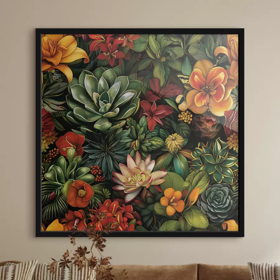 Gėlių ir lapų paveikslas