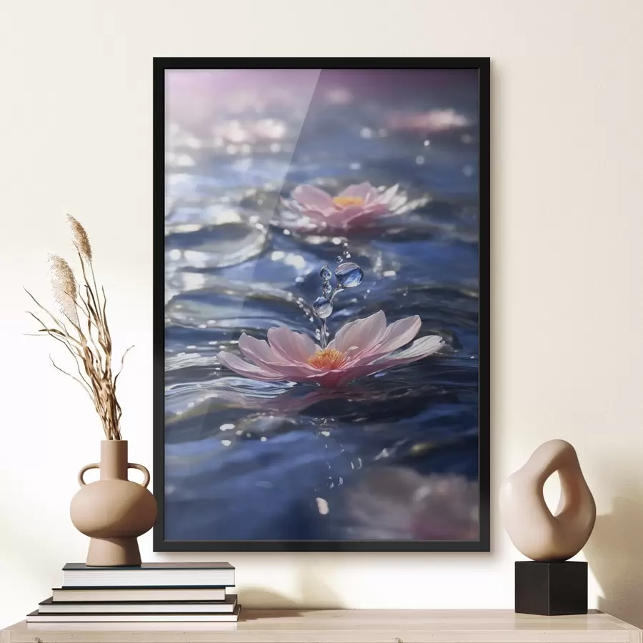 Švelnios lotoso gėlės ant vandens realizmo stiliumi