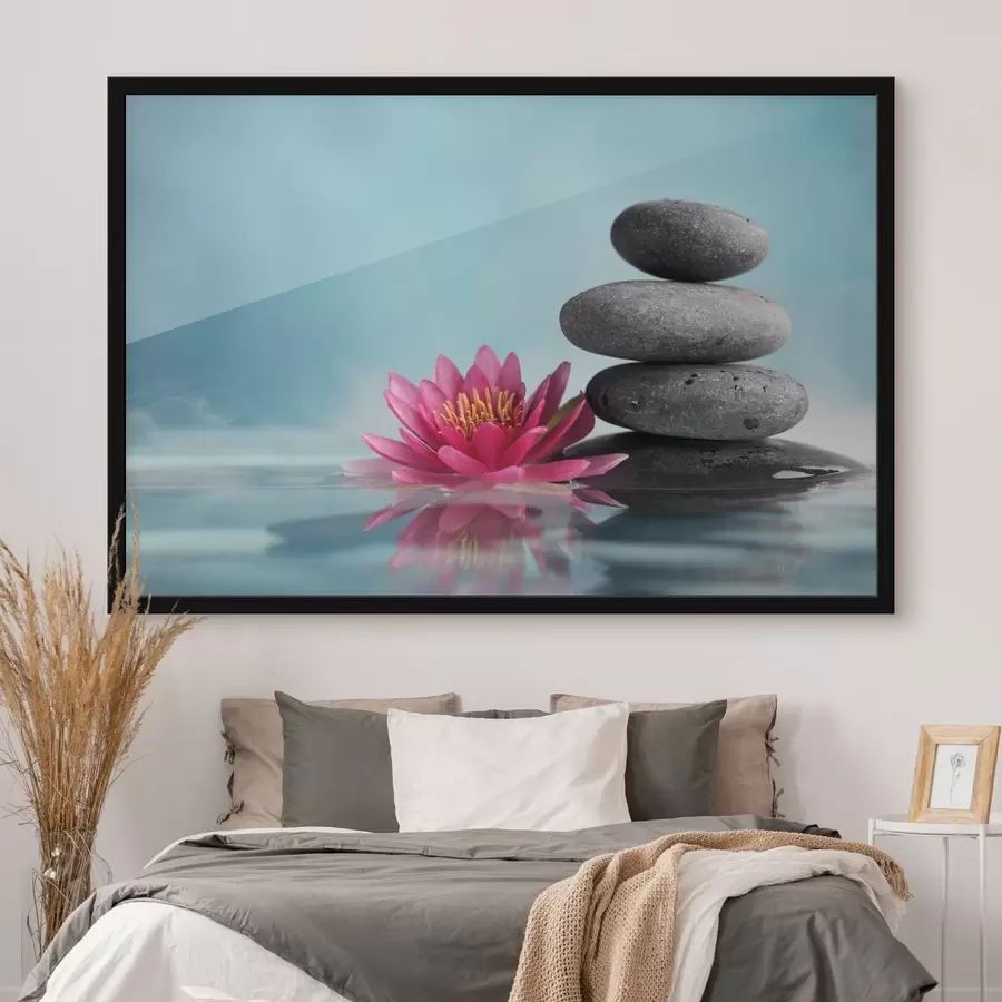 Rožinis lotosas ir akmenys