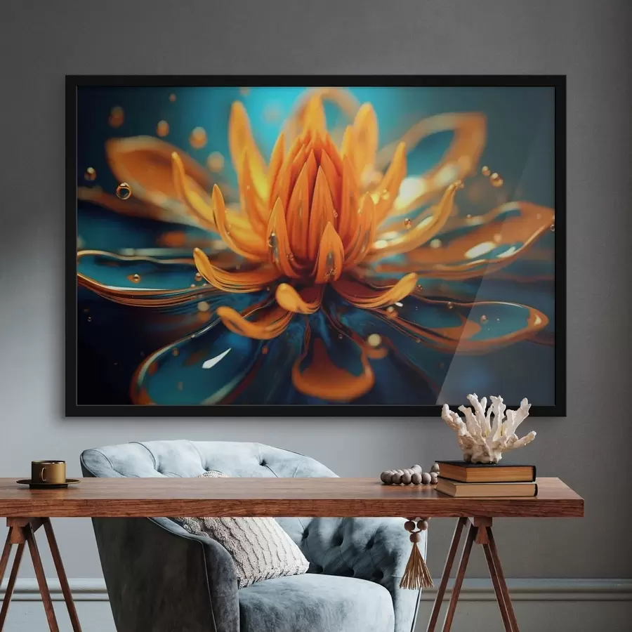 Rožiniai-oranžiniai lotosai 3D piešimo stiliumi