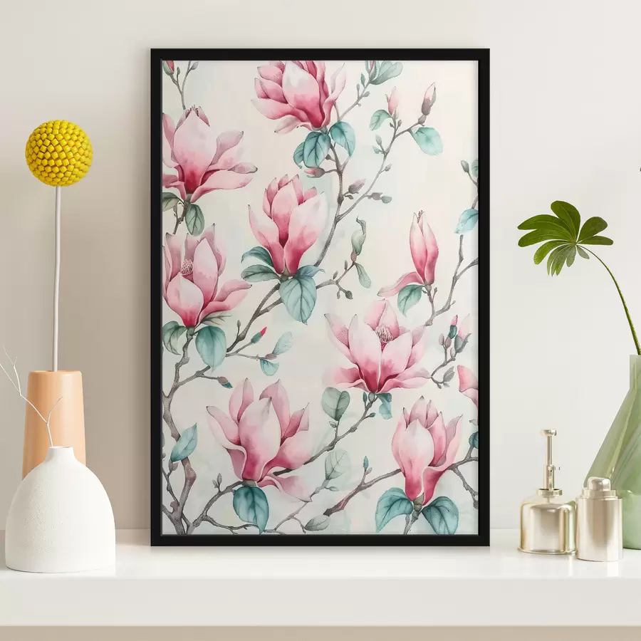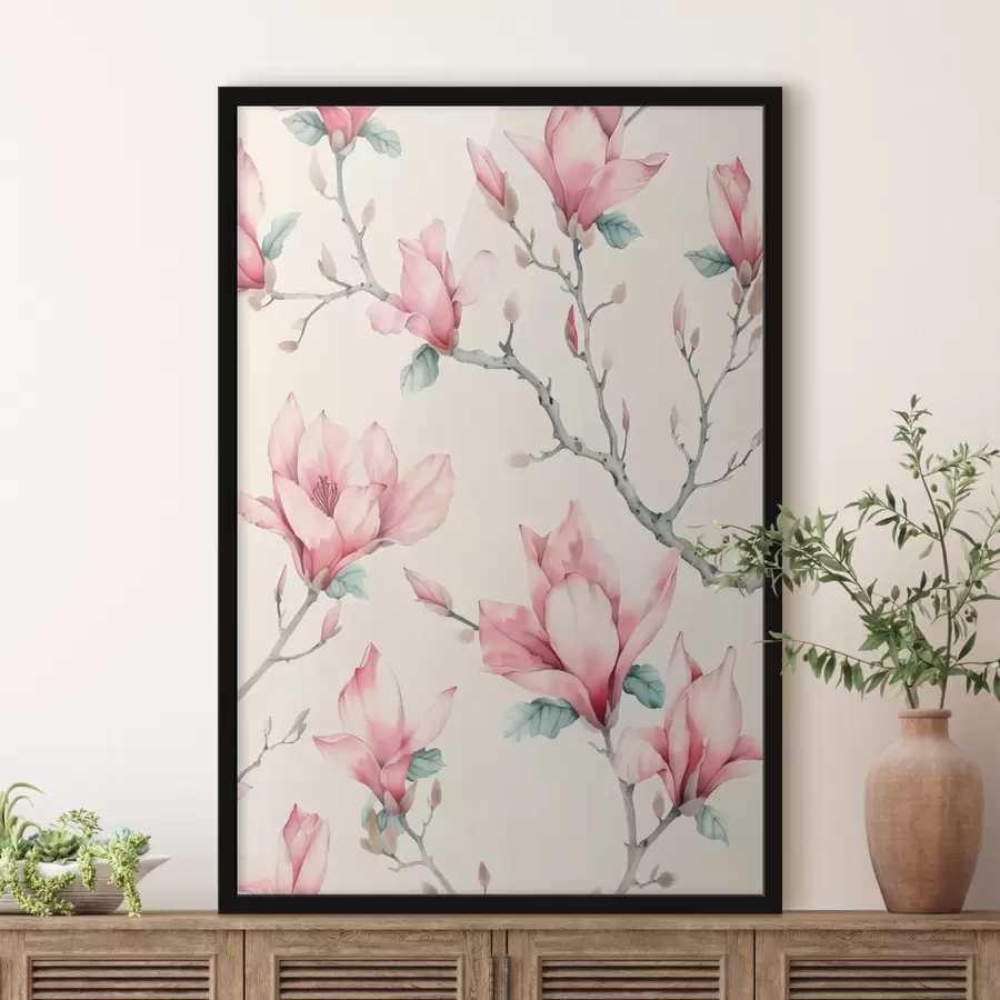 Pastelinis magnolijų švelnumas rausvame fone