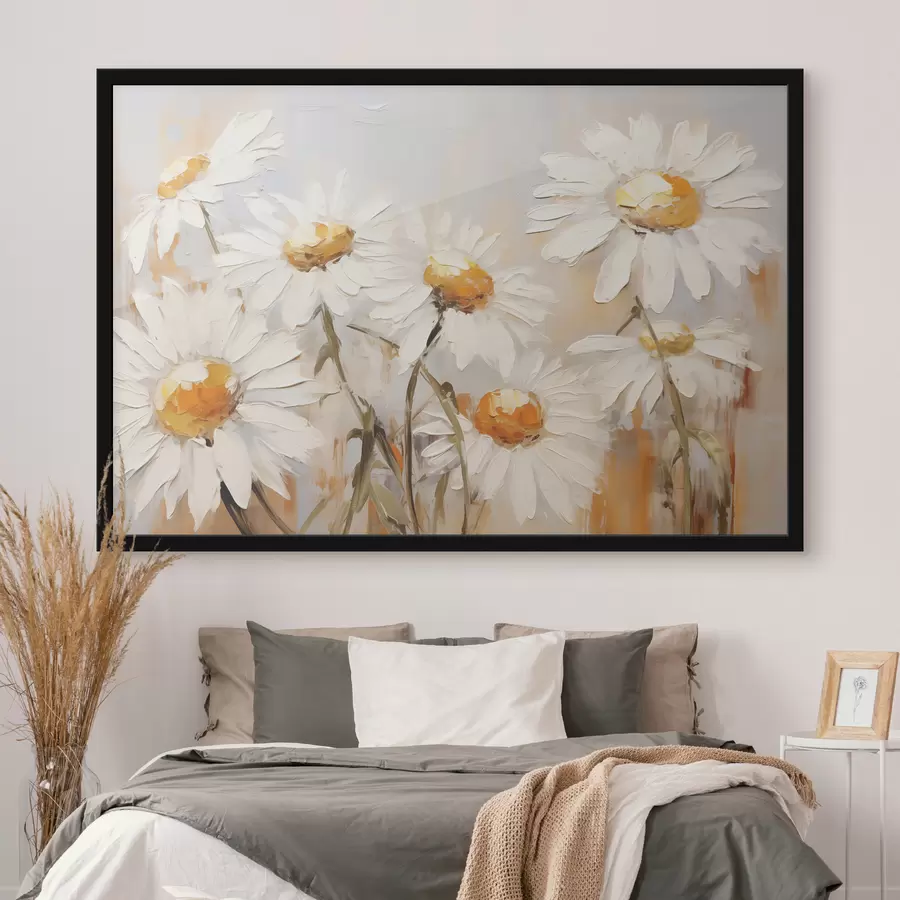 Geltonos mažos gėlės ant ilgo stiebo aliejinio paveikslo