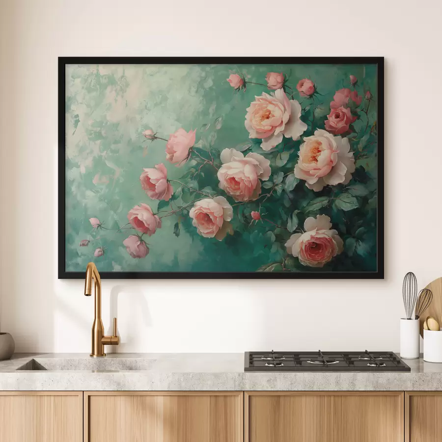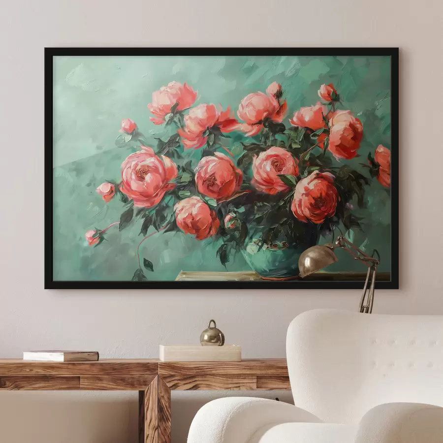Rožinės rožės ant rožinio aliejaus paveikslo