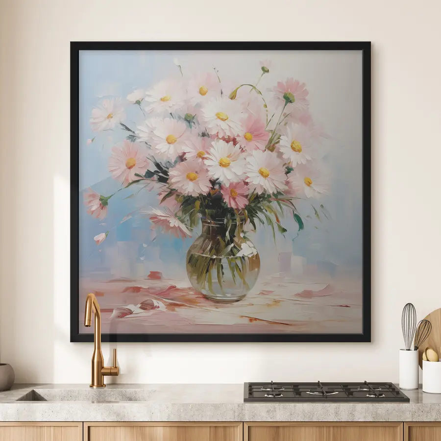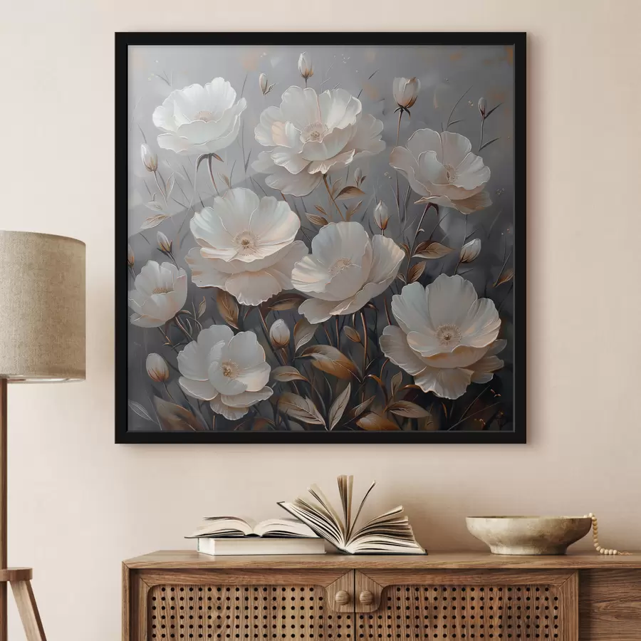 Didelės apimties gėlės: aliejinės tapybos stiliaus kompozicija
