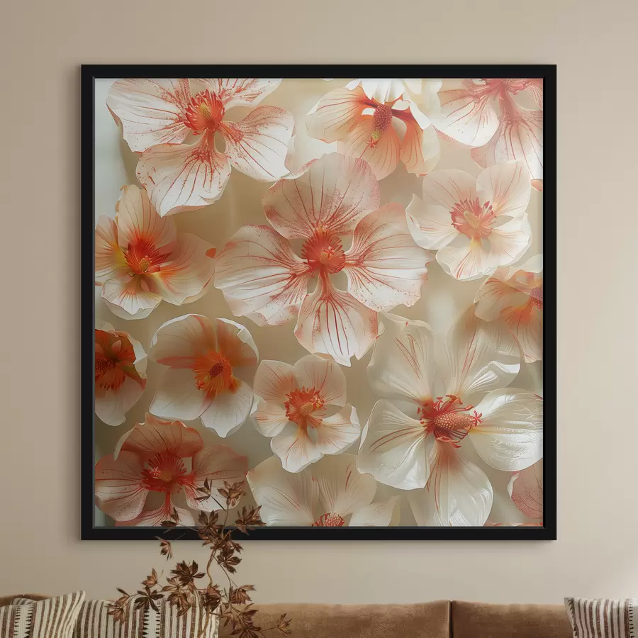 Gėlių motyvas: bareljefinis stilius su augalais šviesiame fone