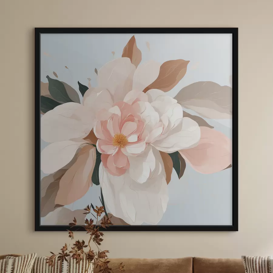 Baltos magnolijos tamsiame fone tapybiniu stiliumi