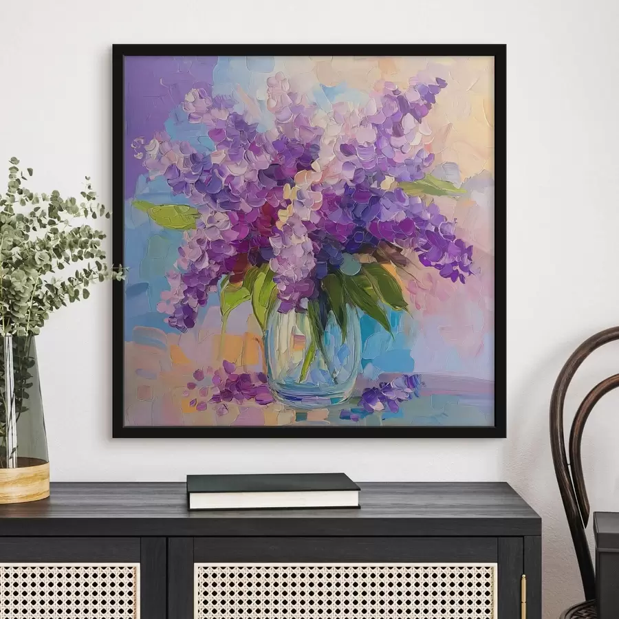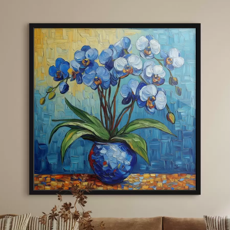 Mėlyna orchidėja Van Gogo stiliaus vazoje, paveikslo imitacija