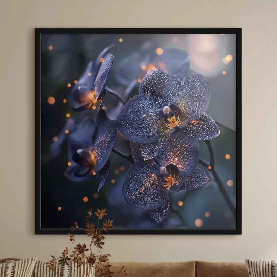 Magiška tamsiai mėlyna orchidėja su geltonais akcentais