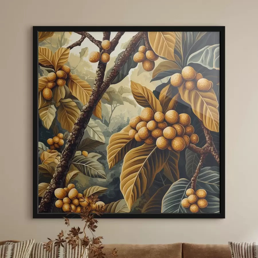 Kavamedis su gelsvų atspalvių vaisiais ir lapais