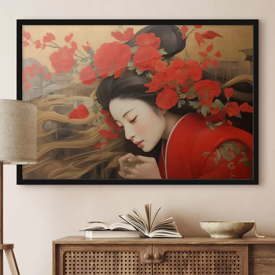 Moteris su gėlėmis plaukuose