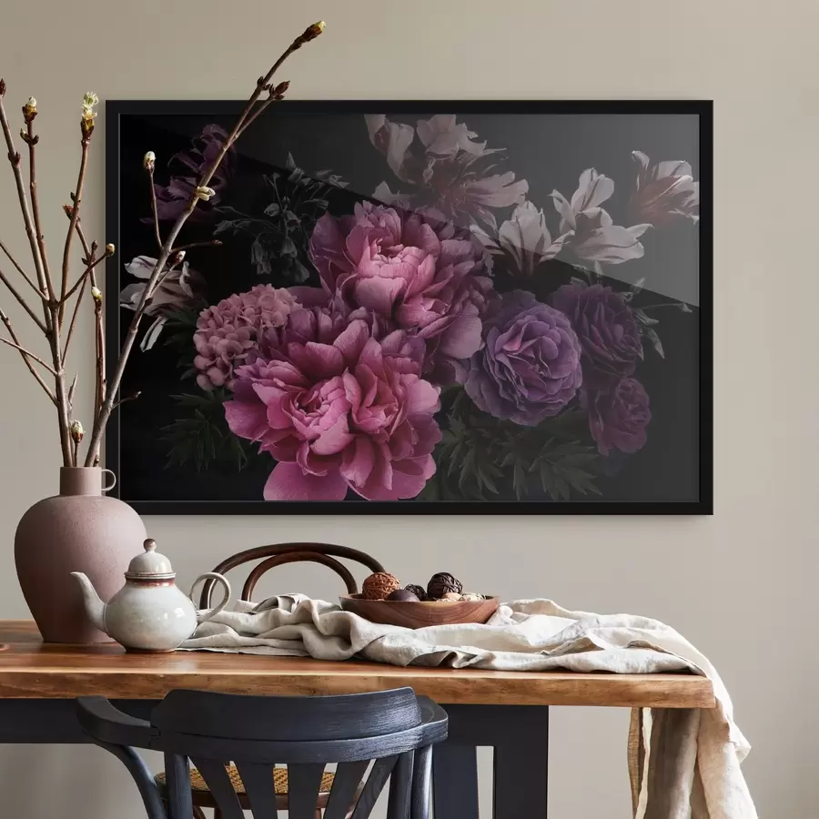 Puošnios gėlės tamsiame fone