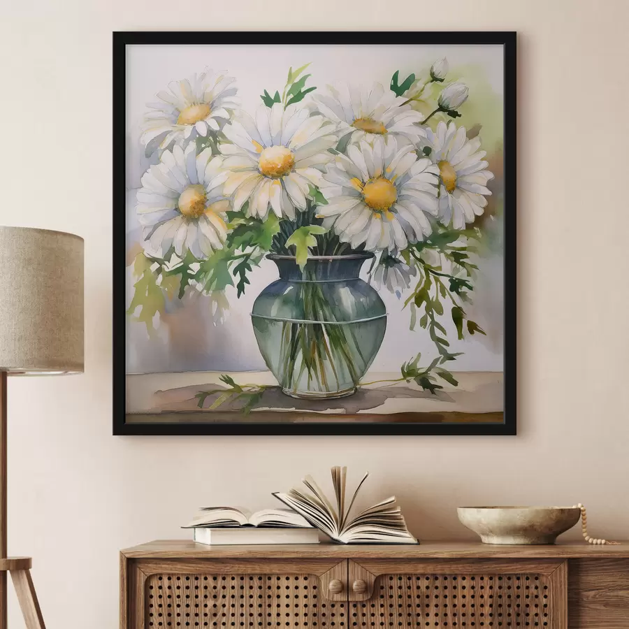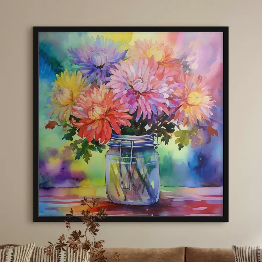 Mėlynų lauko gėlių puokštė stikliniame dekanterio aliejiniame paveiksle
