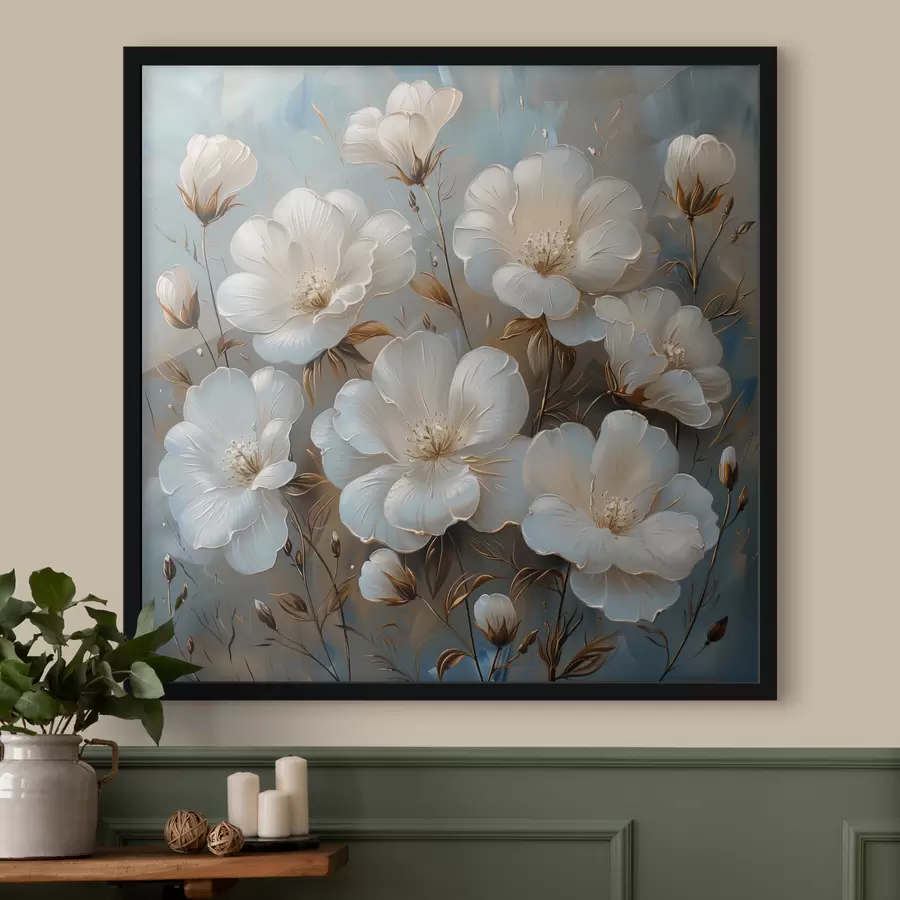 Baltųjų laukinių gėlių augalų spausdinta tekstūra
