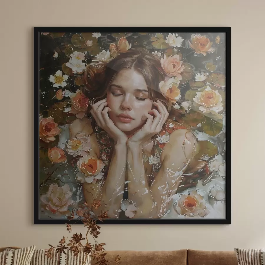 Mergaitės portretas koliažo stiliumi su gėlėmis