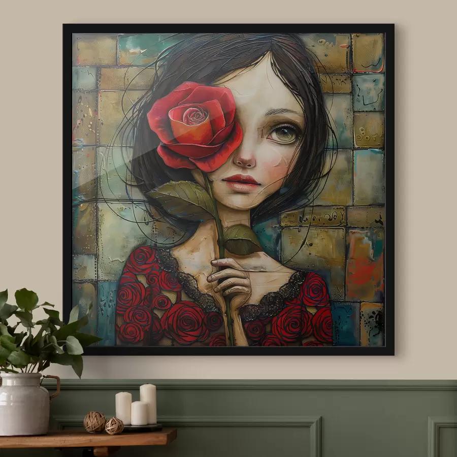 Mergaitė su raudona rože