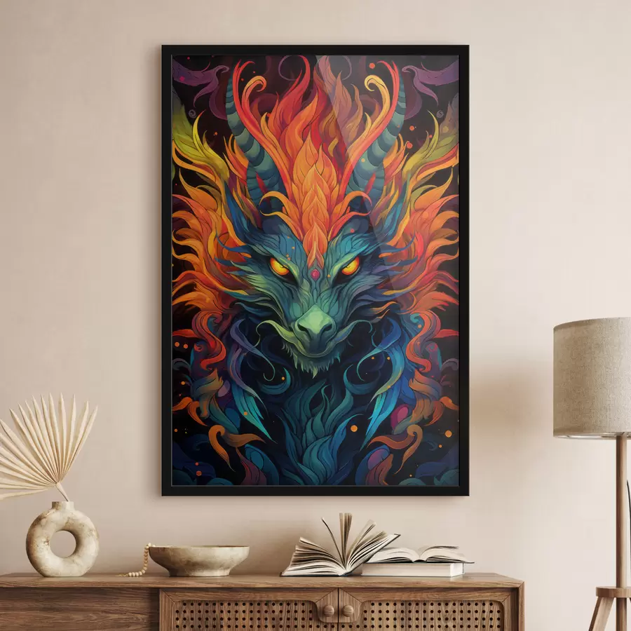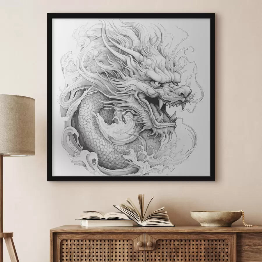 Nespalvotas linijinis kiniško stiliaus drakono piešinys