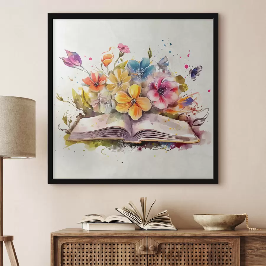 lauko gėlės su akvarelėmis, ryškiais drugeliais, pastelėmis