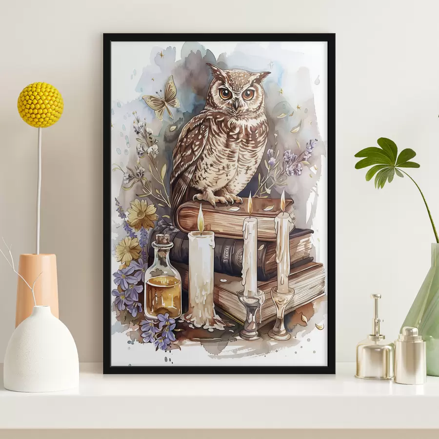 Rudas lokys su megztiniu skaito knygą akvarelinių drugelių apsuptyje