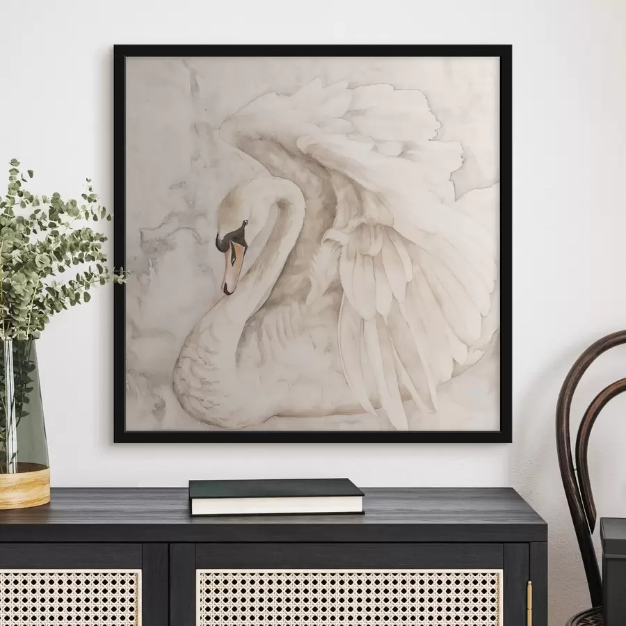 Akvarelė skraidantys paukščiai, švelnios smėlio ir baltos spalvos, balandžiai