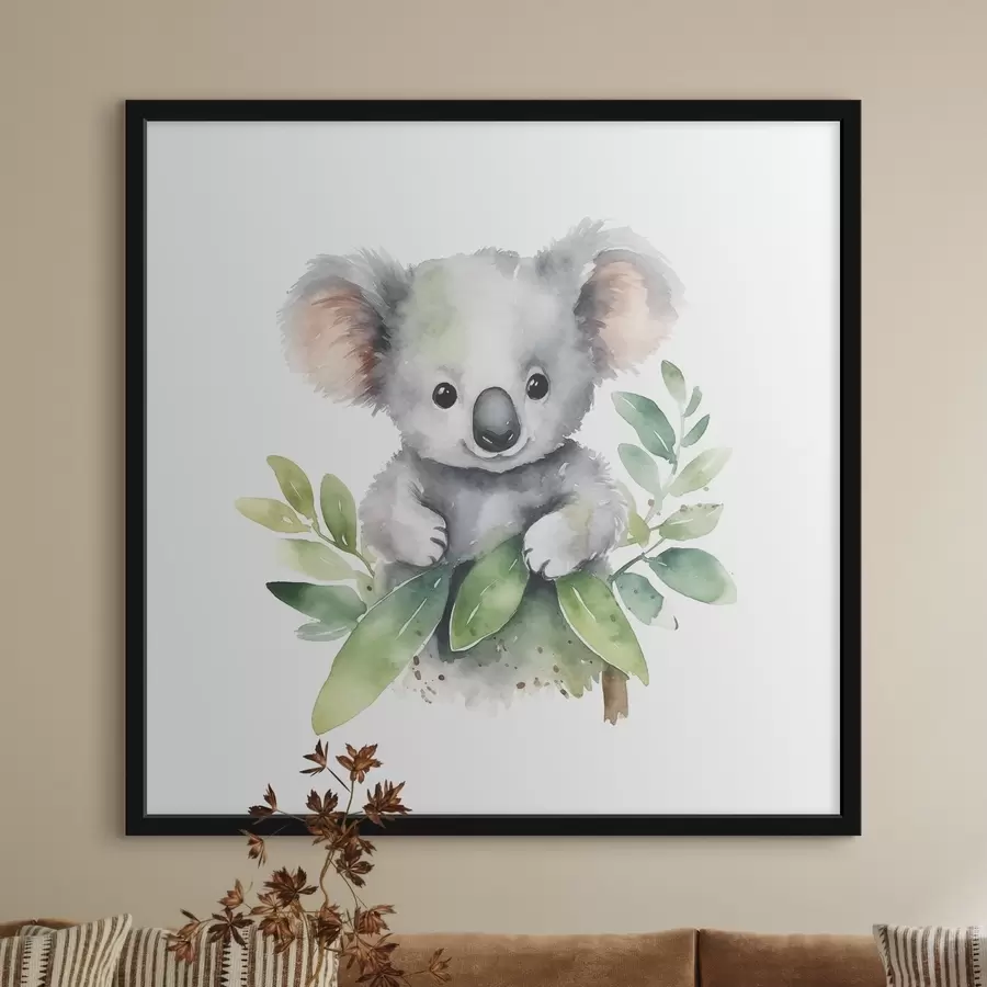 Jauni leopardai, sėdintys ant šakos su žaliais lapais, gyvūnas, akvarelė