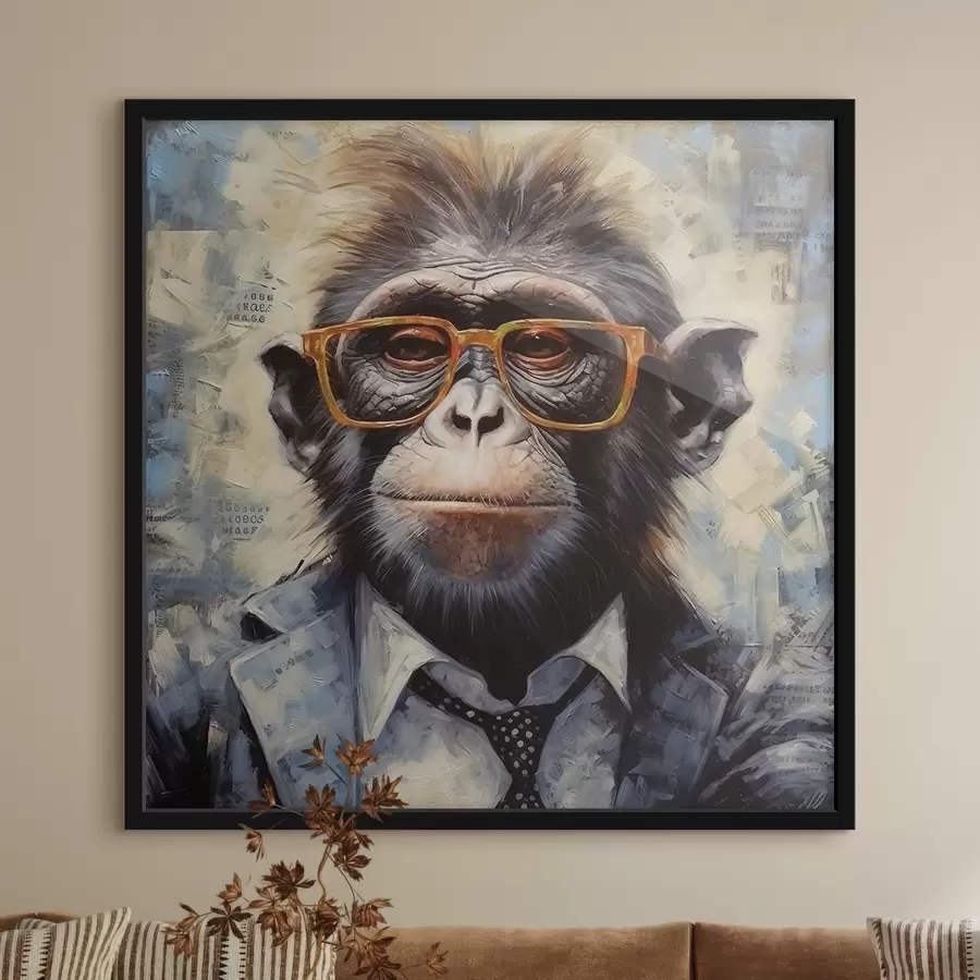 Pilkas kačiukas su juodais akiniais ir mėlynu kostiumu skaito knygą akvarelė