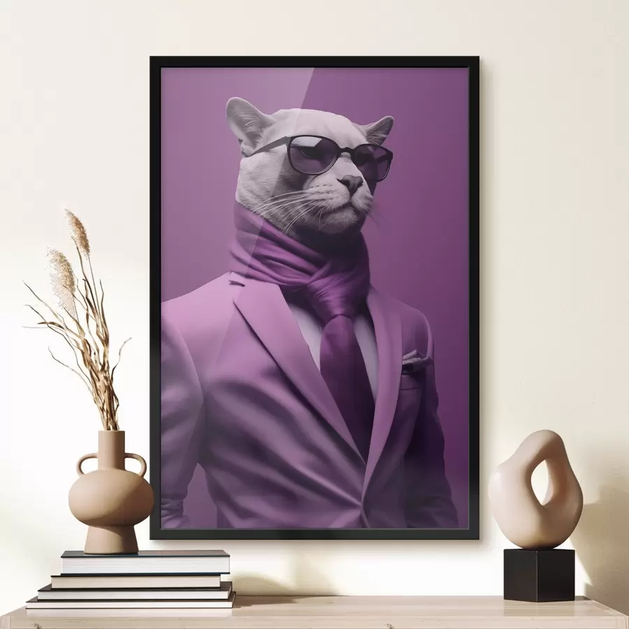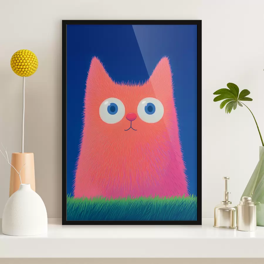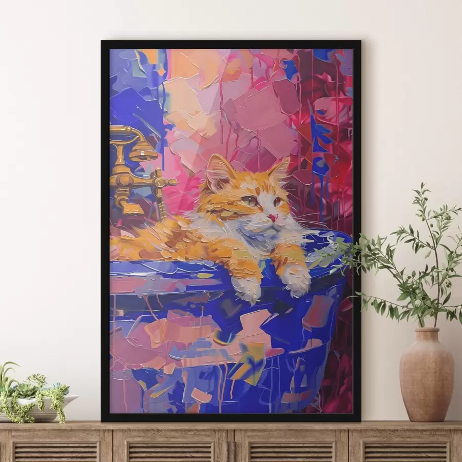 Mėlyna katė rausvame fone, šiurkštūs potėpiai, tapybos imitacija
