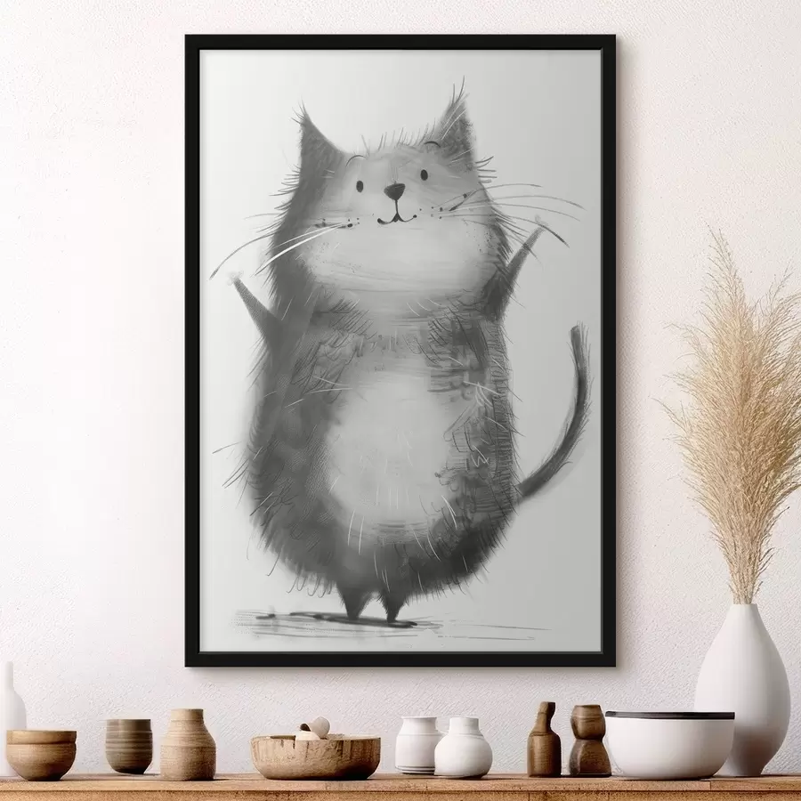 Minimalistinė dviejų mielų kačių iliustracija rašalu