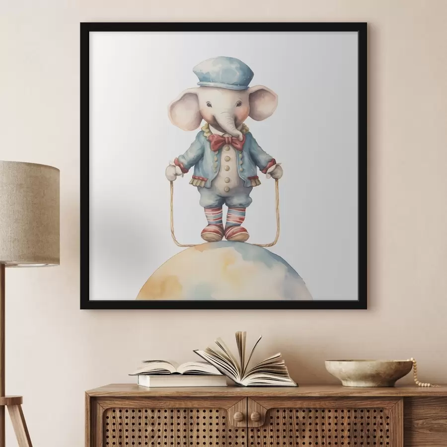 Maža voverytė skrenda akvarelinėje vaikiškoje raudono lėktuvo iliustracijoje