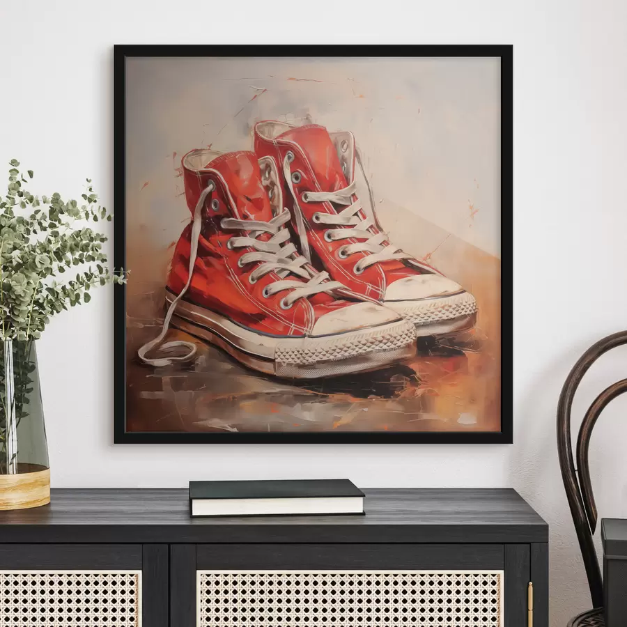 Abstrakti aliejinė tapyba su raudonu kvadratu