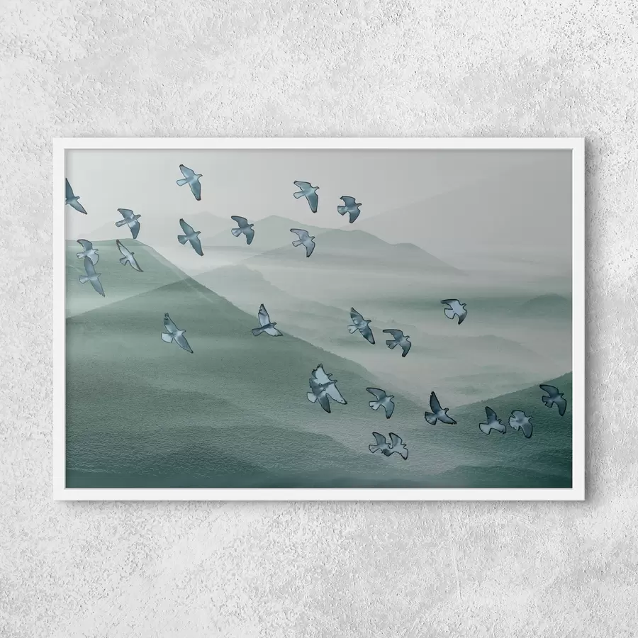 Baltos kiaulpienės mėlyname fone abstraktaus meno tapyba