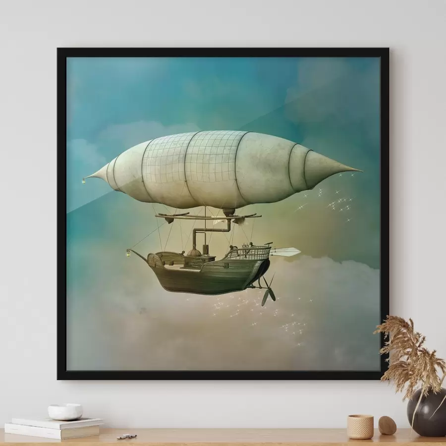 Steampunk dirižablis danguje