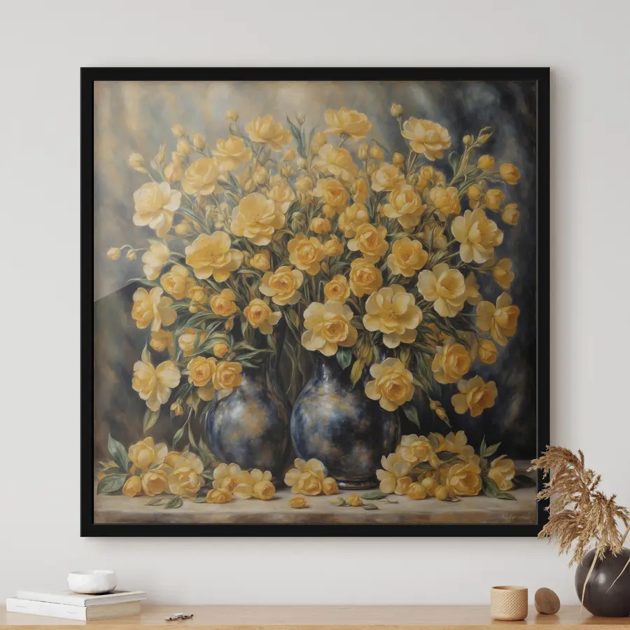 Geltonos spalvos puokštė Auguste'o Renoiro stiliumi.