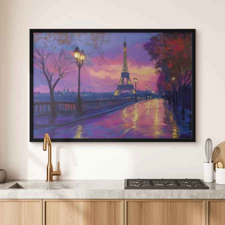 Kaimo kraštovaizdžiai aliejinio stiliaus piešinys, saulėlydis