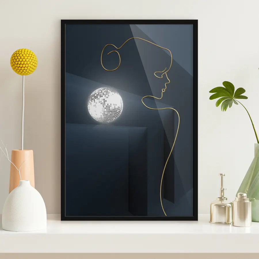 Juodai balta abstrakti tapyba su geltonomis dėmėmis