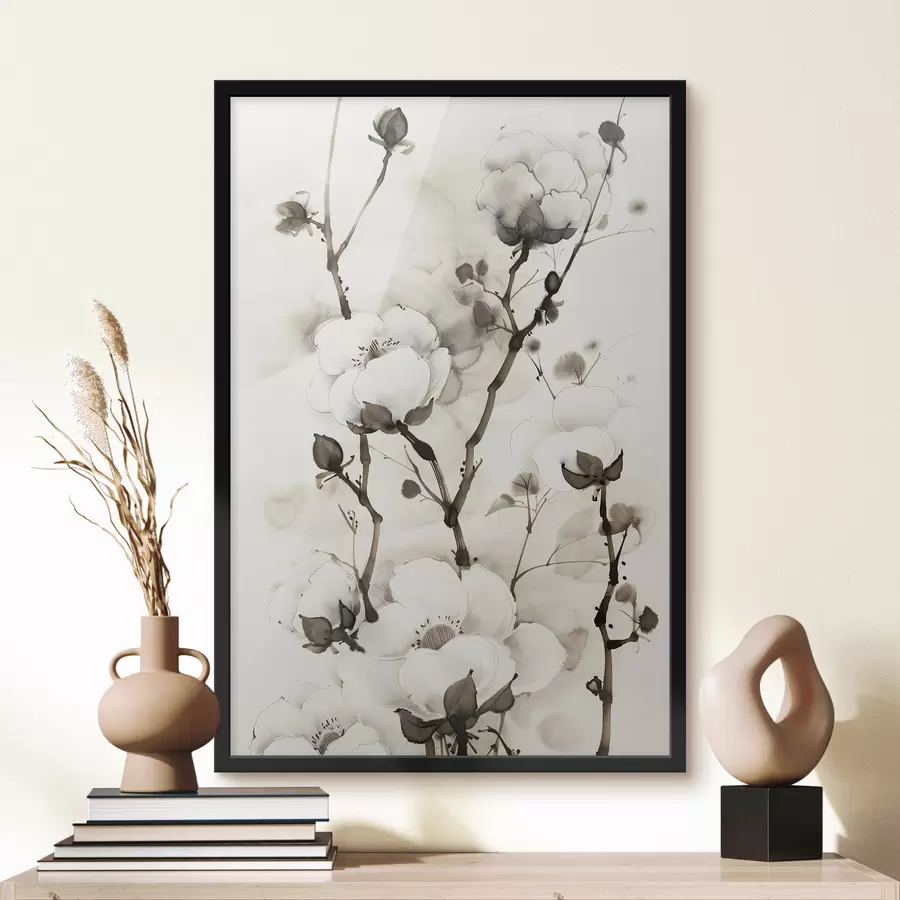 Mergaitė su gėlėmis ant veido juodos ir baltos spalvų