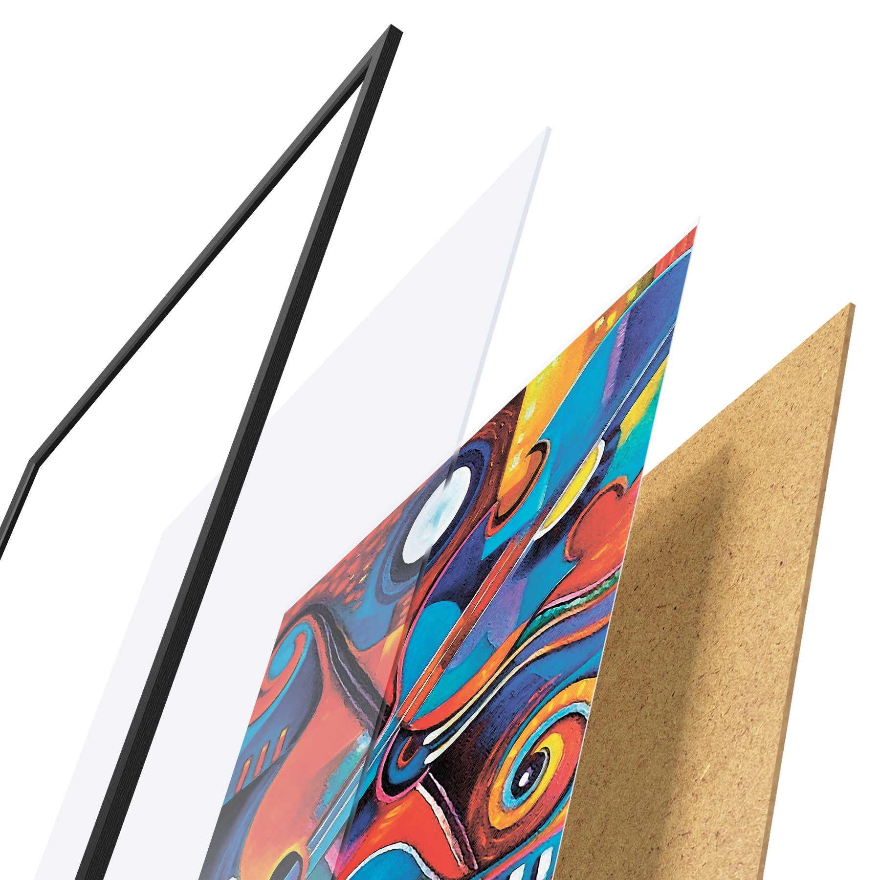 Plakatą sudaro rėmas, pleksiklas, atspausdintas vaizdas ir medžio drožlių plokštės pagrindas. Plakatą galima iš karto pakabinti ant sienos dėl kitoje pusėje esančių laikiklių.