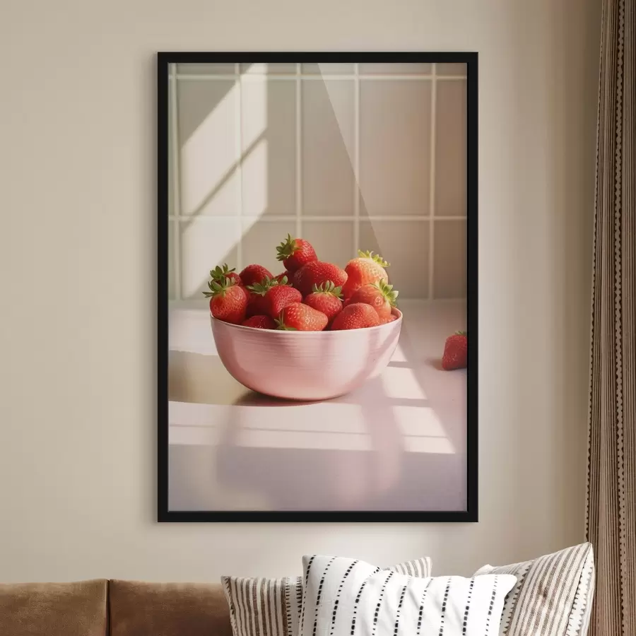 Braškės rausvame dubenyje