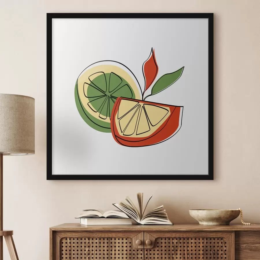 Citrusinių vaisių linijinis piešinys, abstrakcija