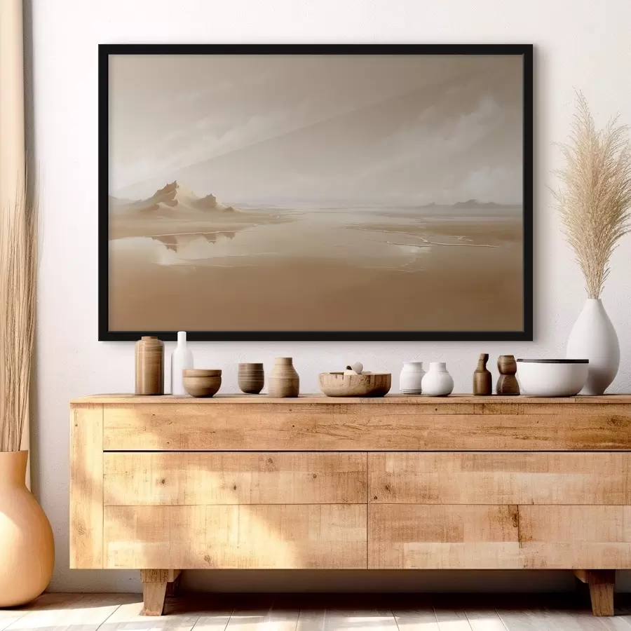 Gražus miško kraštovaizdis, švelnios pastelinės spalvos, smėlio ir balta