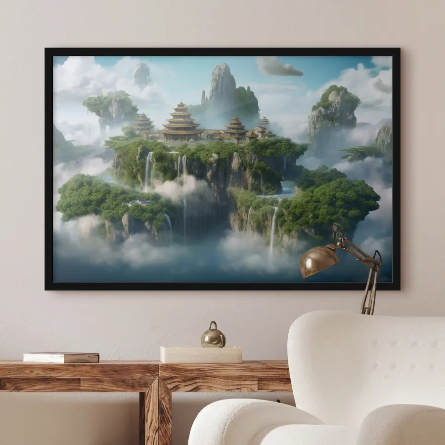Gražūs rūke paskendę kalnai, rudens miškas, akvarelė