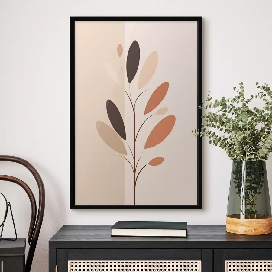 Linijinis portretas ant smėlio spalvos geometrinių figūrų