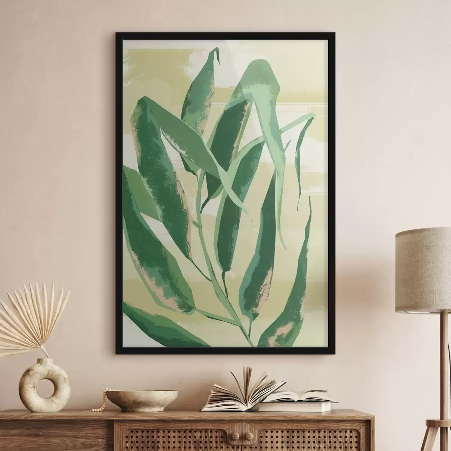 Eukalipto lapai su švelnia, prislopinta spalvų palete, raminančia ir natūralia estetika