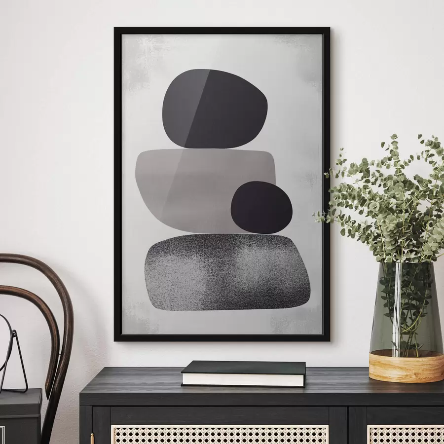 Kompozicija su akmenimis, realizmas, pastelinės spalvos, natūralus apšvietimas