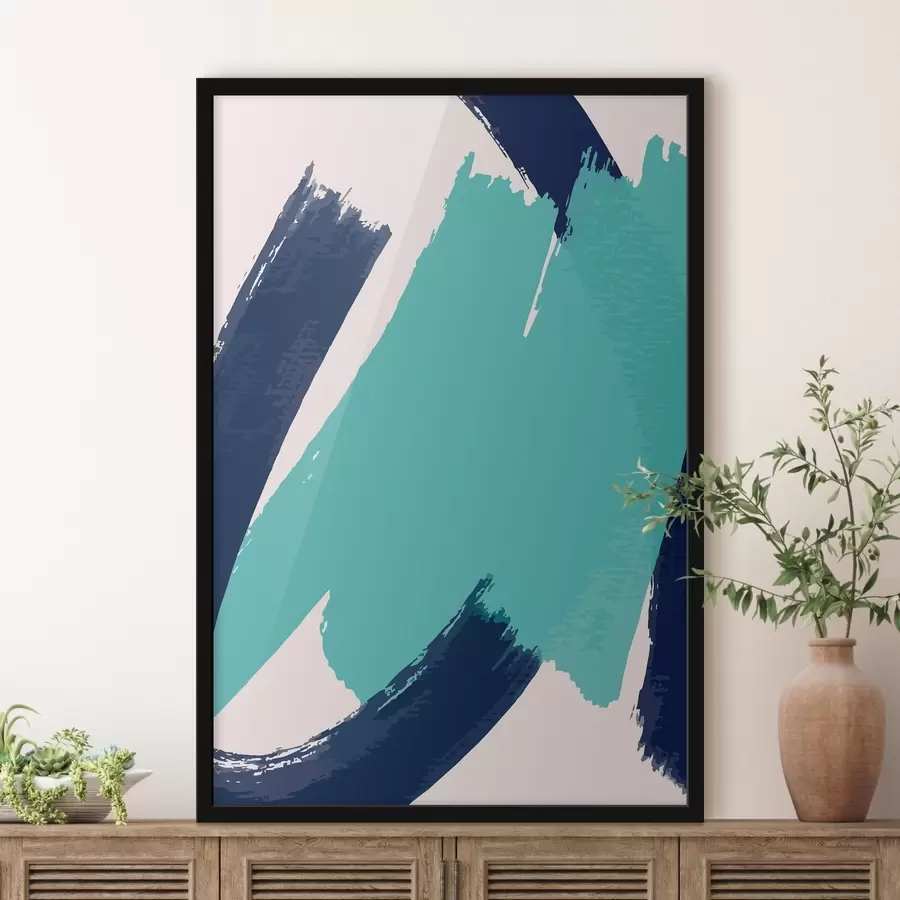 Mėlynos ir turkio spalvos teptuko potėpiai