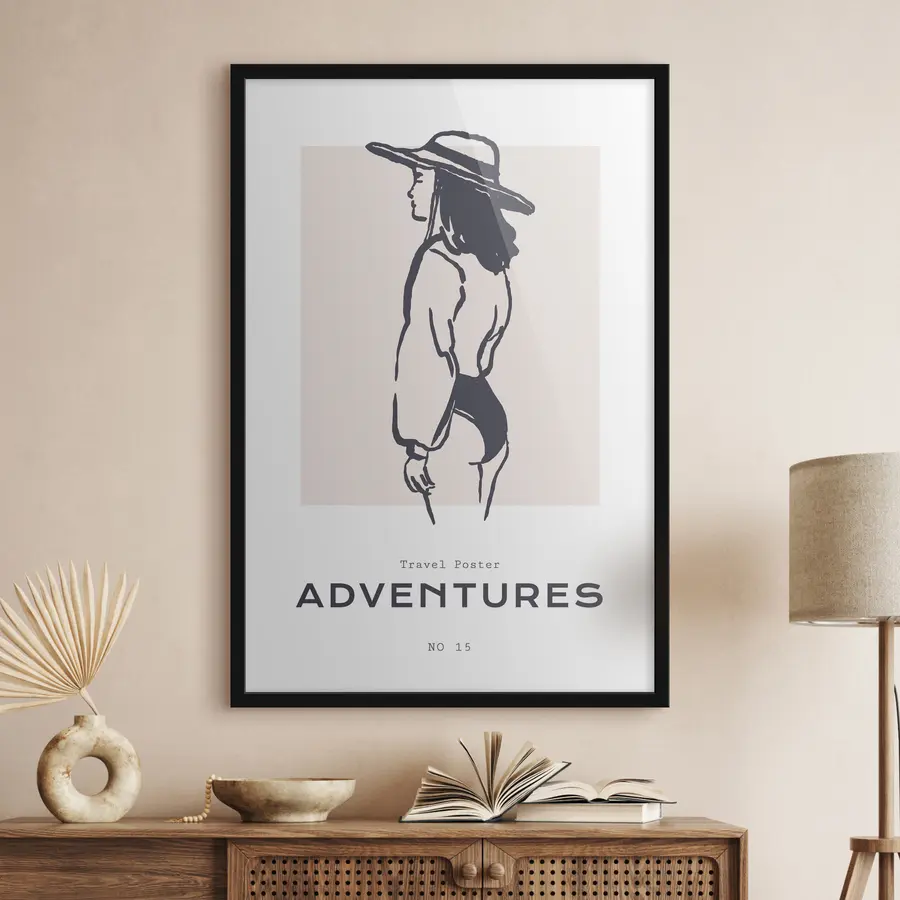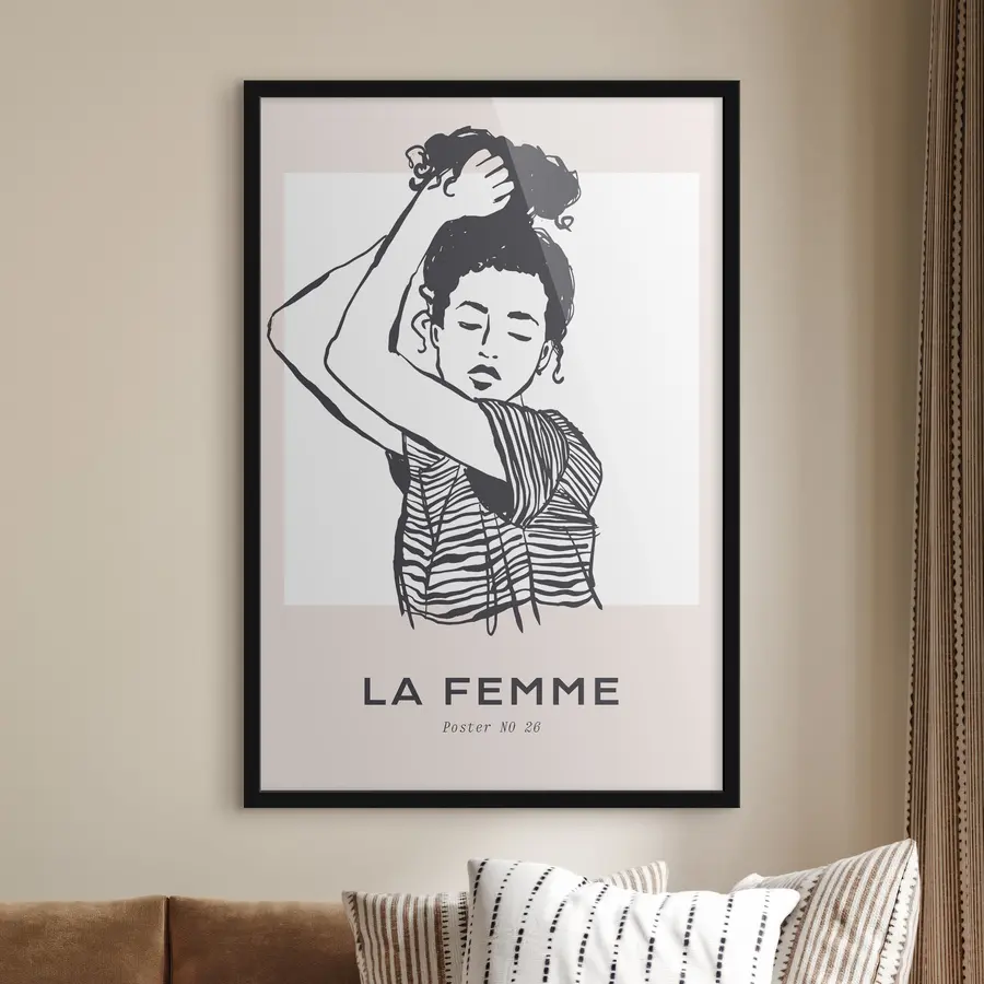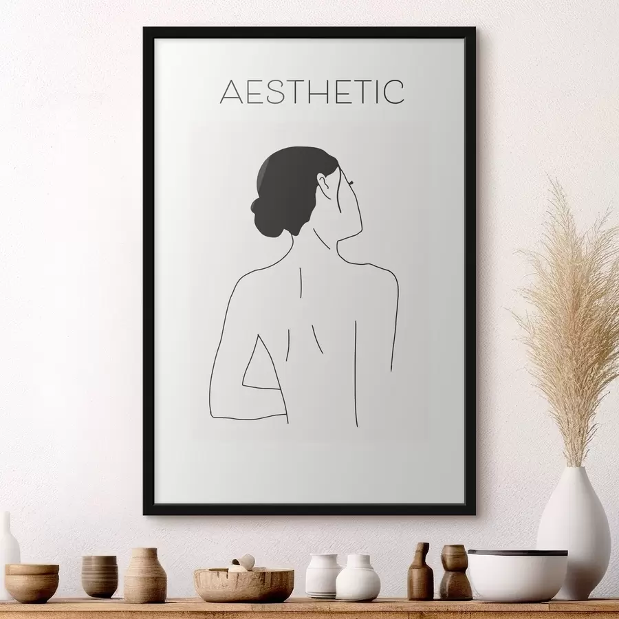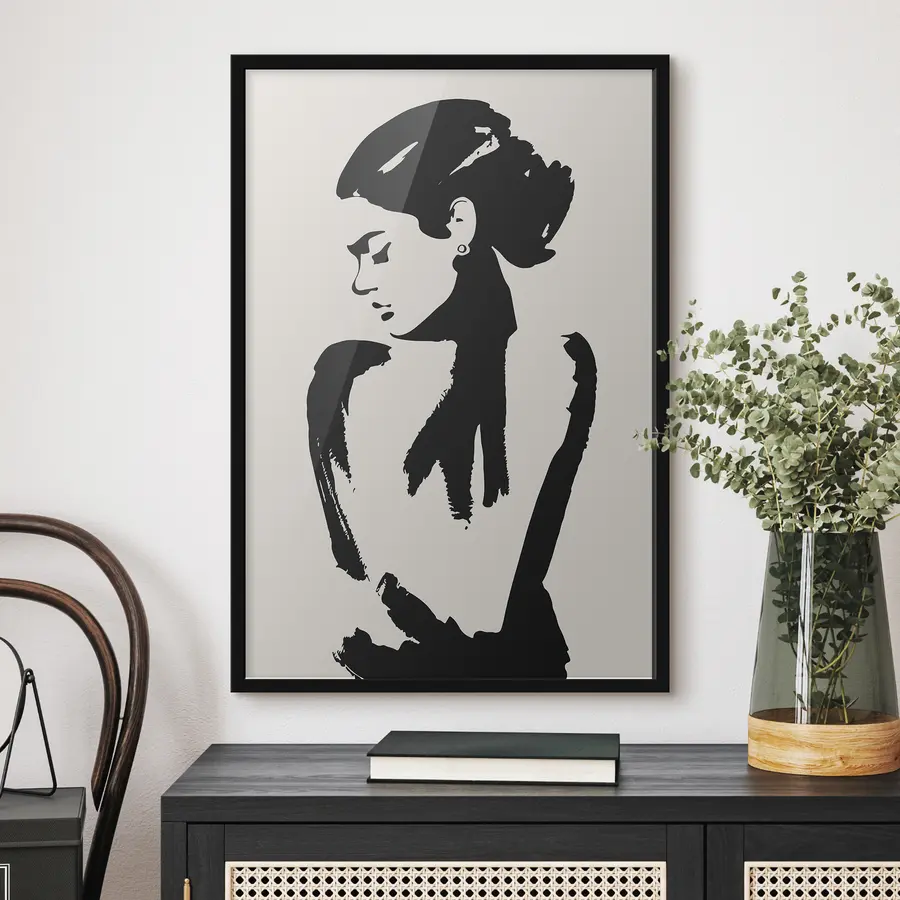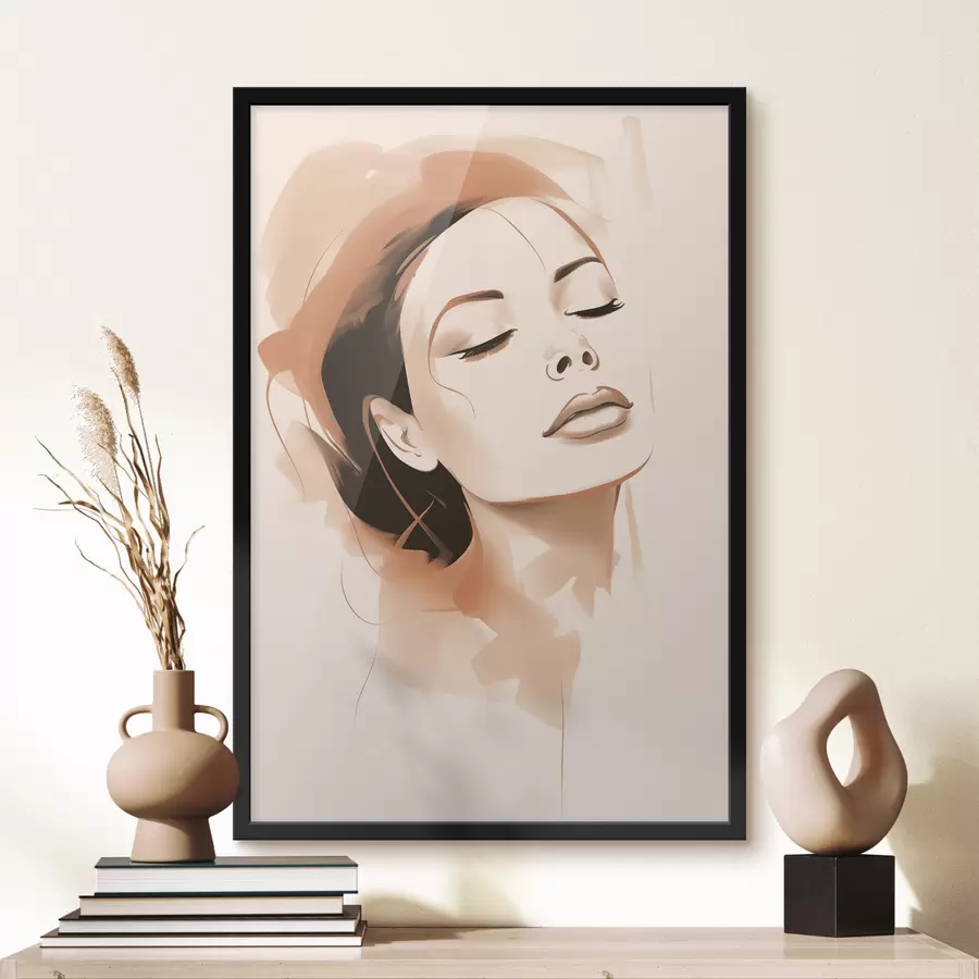 Moters portretas, minimalizmas, akrilo stilius, smėlio spalvos