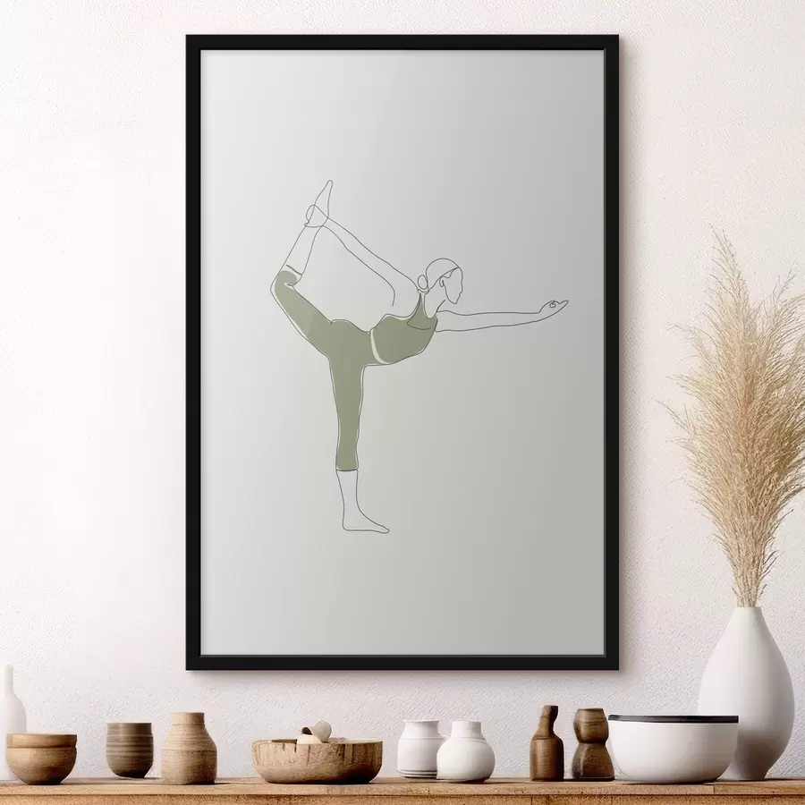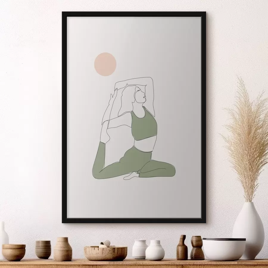 Moteris meditacijoje, plokščias stilius, atogrąžų augalai, rožinės spalvos