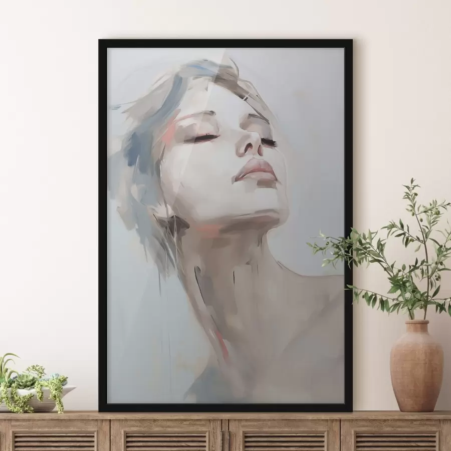 Išraiškingas moters atvaizdas abstrakčiu realistiniu stiliumi
