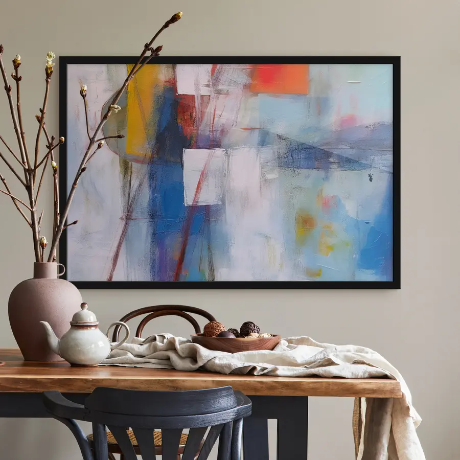Dinamiškai susiduria abstrakčios formos ir spalvos